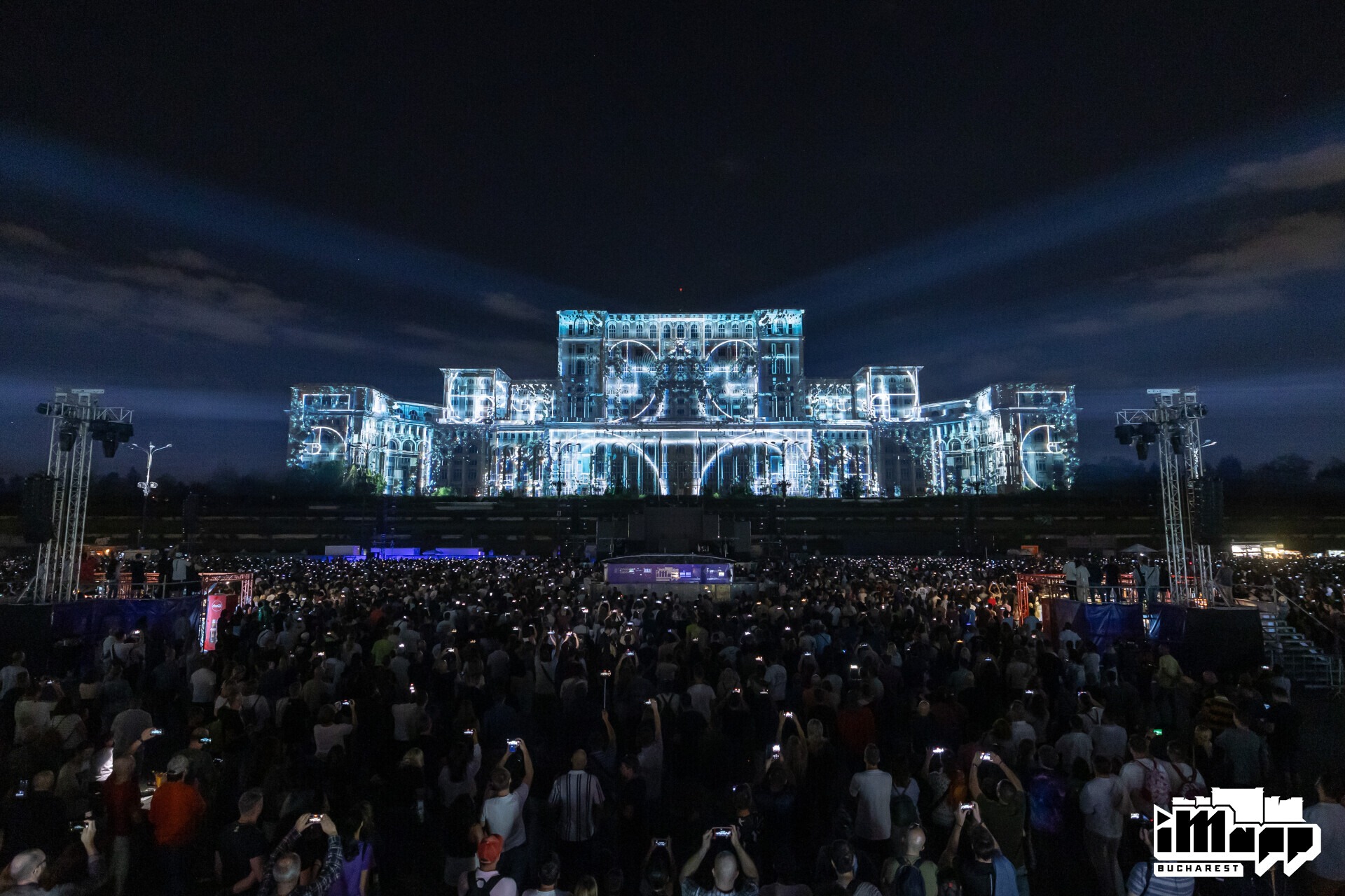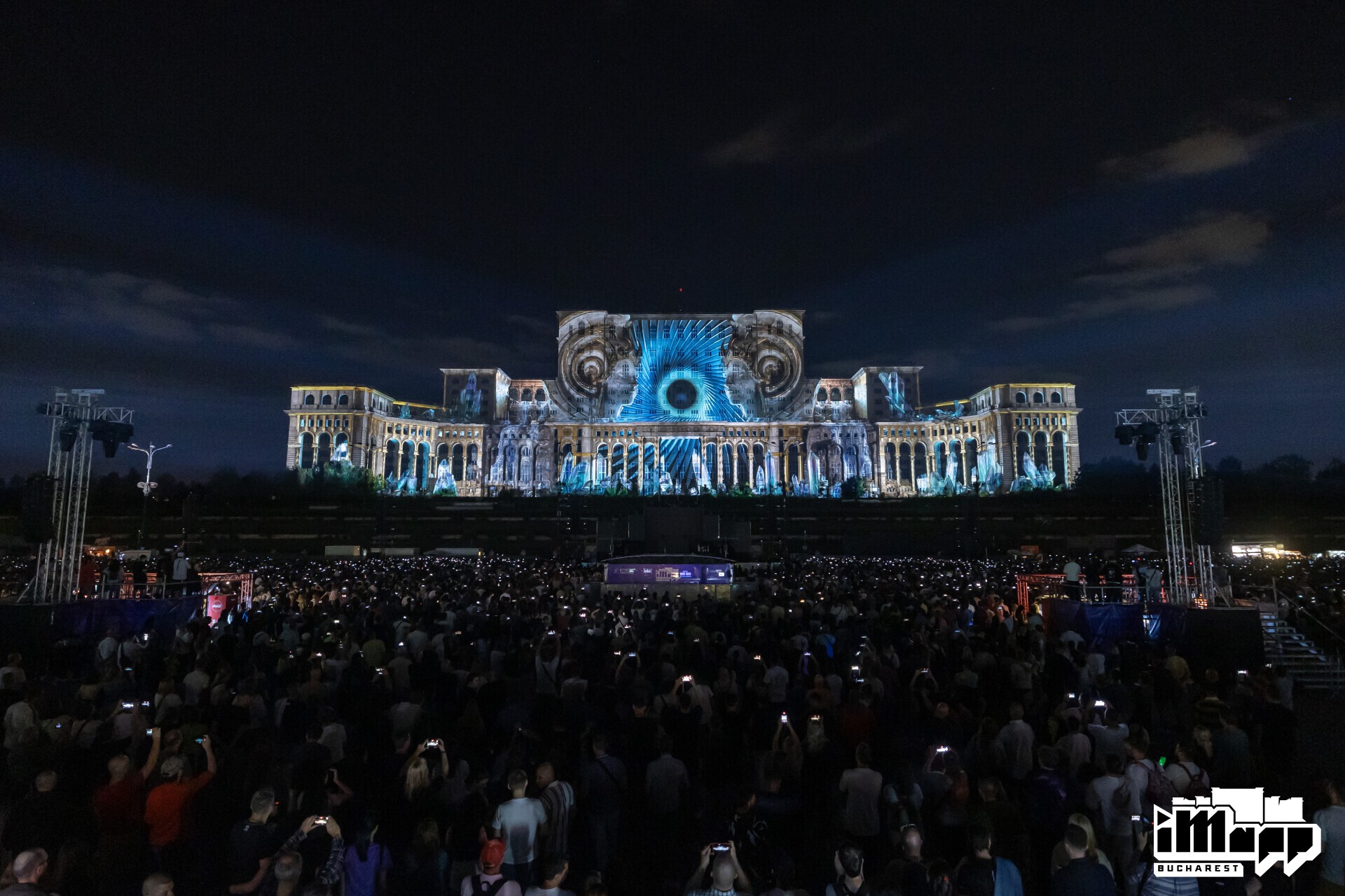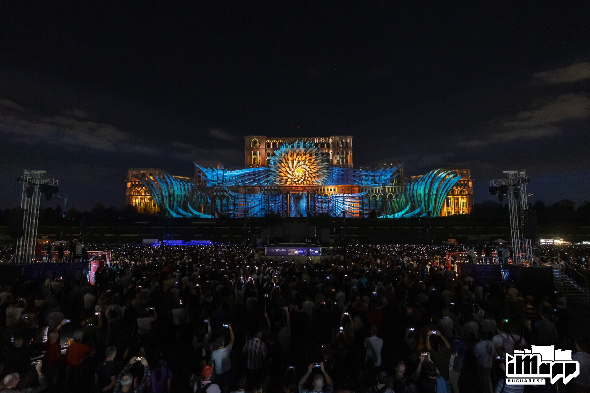 A Glitch Prod creation accompanied by ELEFAN’s Music for the World’s Largest Video Mapping Event. On September 21, 2025, Glitch Prod unveiled RATIO² in Bucharest at the 10th edition of iMapp Bucharest, the world’s largest architectural video mapping festival. Every year, this monumental event transforms the facade of the Palace of the Parliament into a 23,000 m² canvas of light, projected using 64 high-powered video projectors, captivating tens of thousands of spectators.